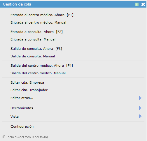 Desde el menú superior 'Gestión de Cola', o pulsando con botón derecho del ratón sobre el listado de trabajadores, desplegaremos un menú con las siguientes opciones:
