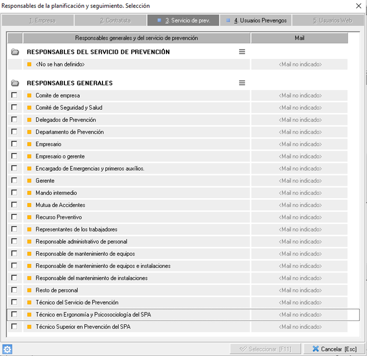 El primer campo que encuentran es para indicar la Responsabilidad de la actividad, proveniente de su propio mantenimiento (Mantenimientos -> Prevención técnica -> Responsabilidad de las actividades), donde podrán elegir un elemento existente, crear o editarlo, siempre según los permisos que tenga el usuario. A continuación, tendrán la opción de indicar los responsable de ejecución de la actividad, al estar en el mantenimiento no existirá la opción de elegir elementos de la empresa, obviamente, pero si está disponible la opción de añadir elementos genéricos del mantenimiento de responsables o usuarios de Prevengos.