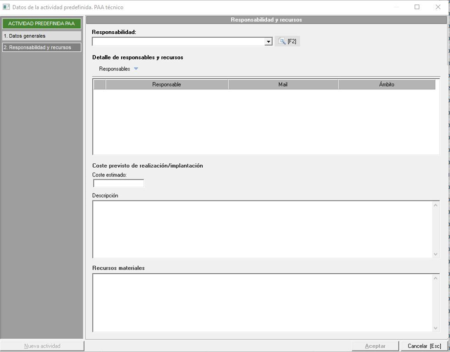 Como pueden ver en la imagen superior, la ventana que se muestra tiene 2 pestañas principales, la correspondiente a los Datos generales y la relativa a responsabilidad y recursos.