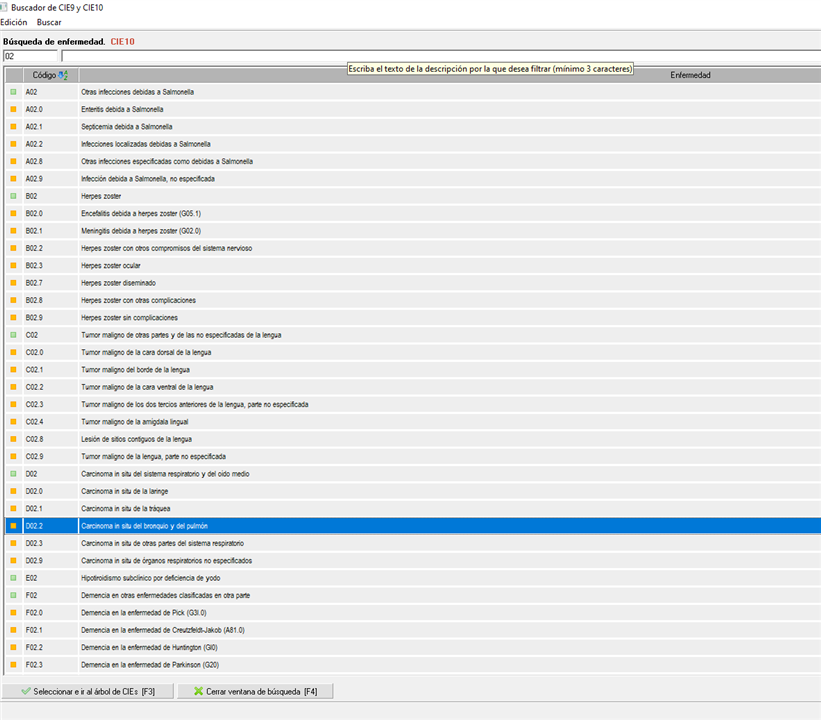 Este listado de enfermedades es el que se utiliza para añadirla en la historia clínica o la consulta médica.