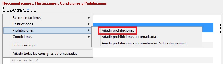 2.5 Prohibiciones. Añadir Prohibiciones adicionales desde el mantenimiento (no automatizadas)