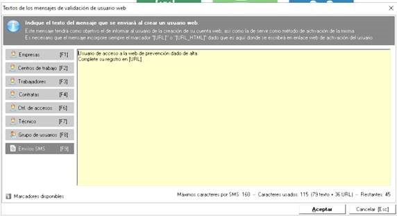 Si quiere modificar el texto del SMS, debe ir al menú ‘configuración->textos para los e-mails de validación de usuarios’