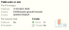 - Si está publicado, mostrará en qué carpeta y qué usuario de Prevengos lo publicó.