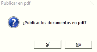 donde se nos abrirá un desplegable en el que aparecerá la opción "Publicar documento en la web". Al pulsar este botón lo primero que hará Prevengos es preguntarnos si estamos seguros de que queremos publicar el documento en la web y tras confirmar nos preguntará si deseamos convertir el documento a PDF para su publicación (siempre que tenga un formato que se pueda convertir a PDF); si indicamos que no, se publicará en el formato adjuntado.