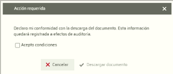 - "No requiere ninguna acción" . Al marcar esta opción, cuando se descargue esta documentación desde la web no se solicitará nada.