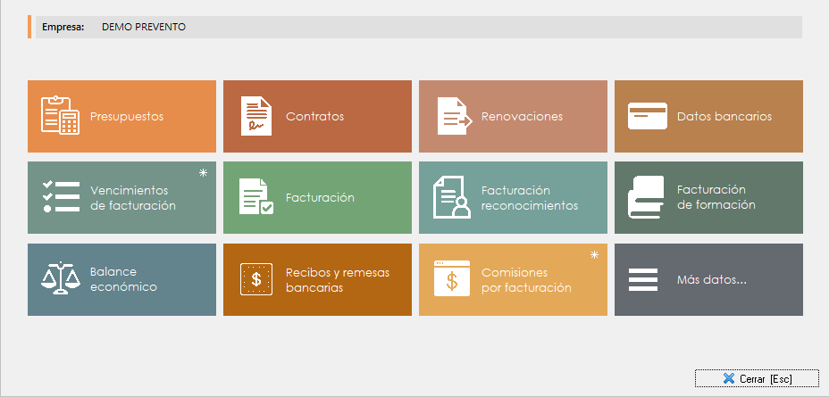 Gestiona específicamente la facturación derivada de los reconocimientos médicos realizados, manteniendo este concepto diferenciado del resto de servicios facturados. - Facturación de formación
