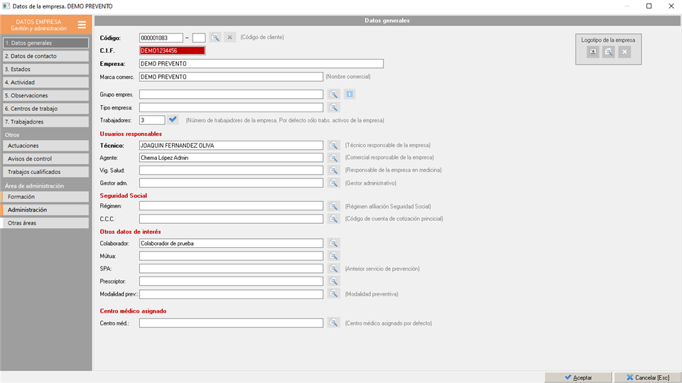 Una correcta configuración de esta ficha garantiza que todos los documentos emitidos desde Prevengos reflejen fielmente los datos de la empresa, evitando errores o inconsistencias en la documentación generada.