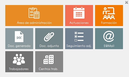 Este módulo unifica las funcionalidades de Gestión y Administración en un único entorno. En caso de no haber adquirido el módulo de administración, el acceso se mostrará con el icono GES, correspondiente únicamente a la parte de gestión (Creación de empresas, trabajadores, centros de trabajo, ...).