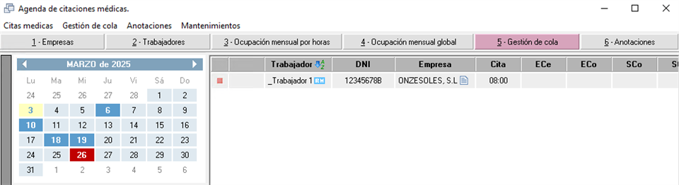 desde la vista empresa, desde la vista de Trabajadores y desde la vista Gestión de cola, tal y como muestran las siguientes imágenes.