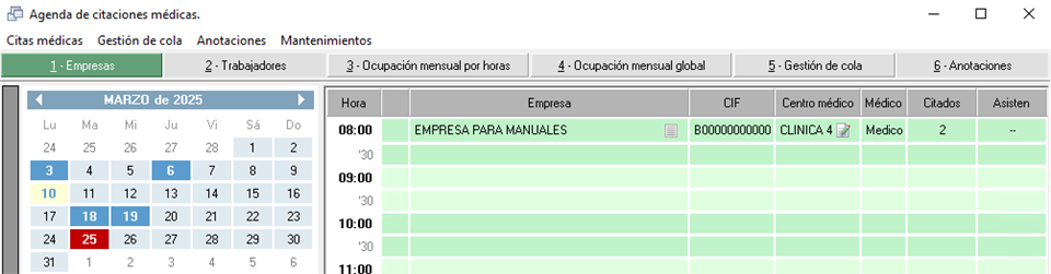 Una vez dentro, podemos ver una vista general de lo que nos encontramos al acceder a la agenda médica en la siguiente imagen:
