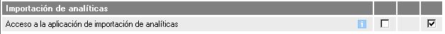 Solo tenemos un permiso para habilitar la importación de analiticas a un usuario: