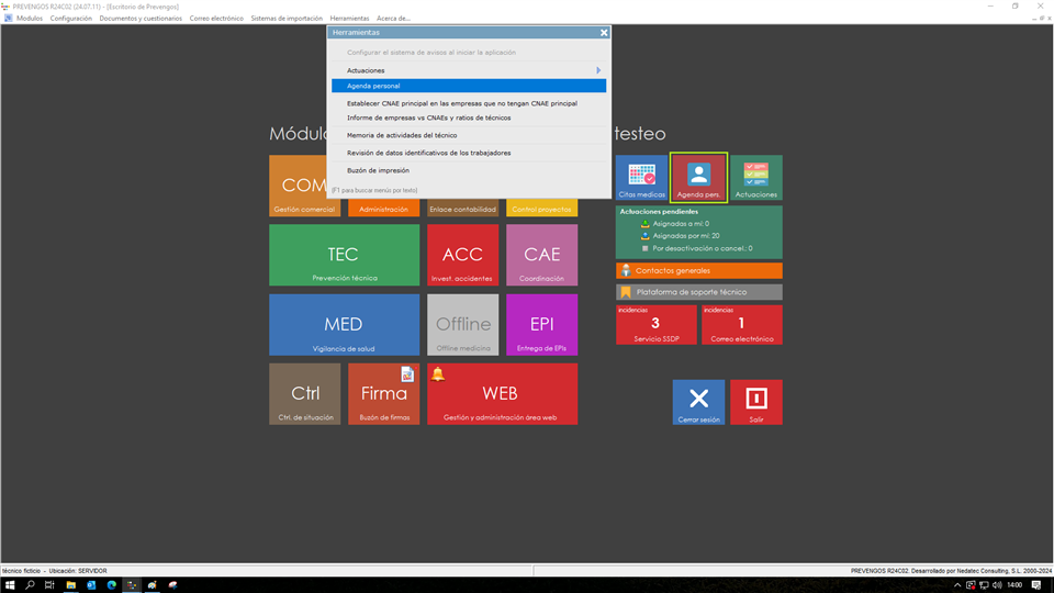 Prevengos dispone de una herramienta que nos permite establecer avisos sobre una serie de elementos, de tal manera que serán accesibles tanto desde la agenda personal del usuario como desde la Web.
