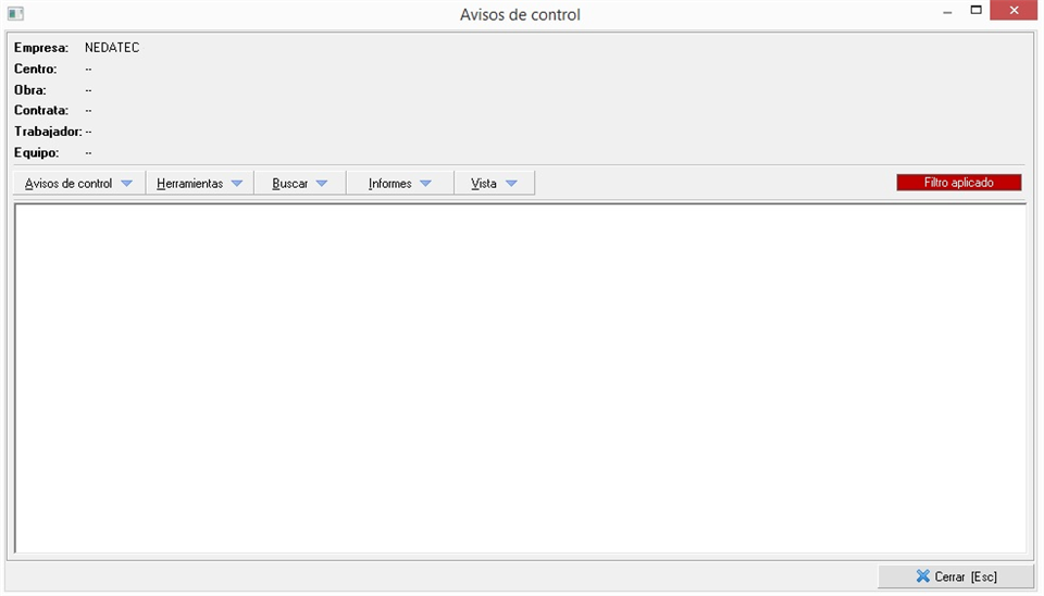 Hasta ahora hemos visto que son los avisos de control y como configurarlos, ahora vamos a ver como crearlos. Una vez accedamos a la creación de un aviso de control (en una empresa, centro, trabajador, ....) veremos una pantalla similar a esta:
