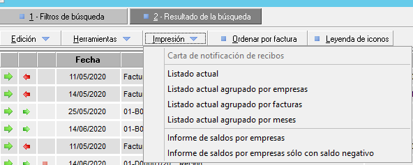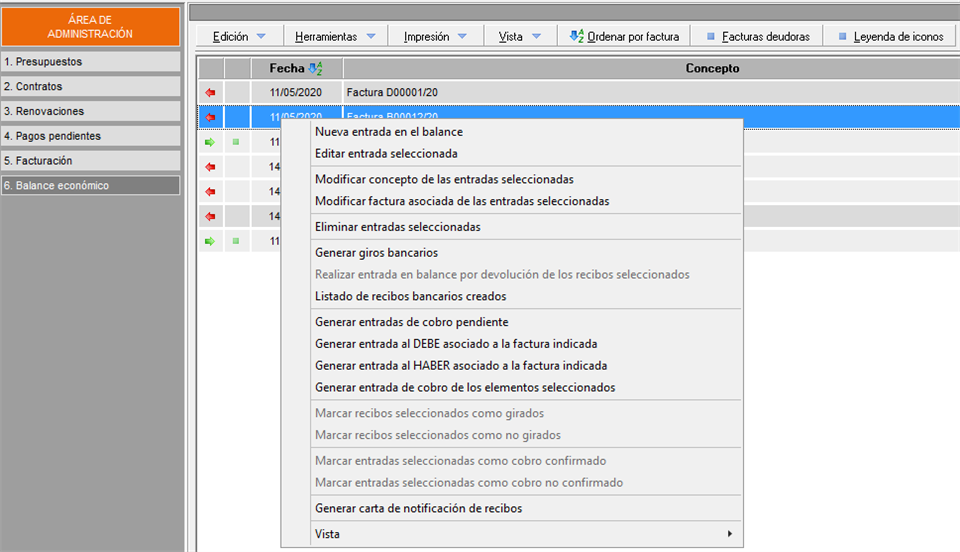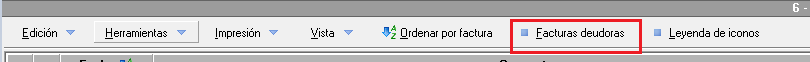 En la barra superior puede encontrar "Facturas deudora", una herramienta muy útil para el control de facturas pendientes de cobro. Puede ver su funcionalidad en control de empresas y facturas deudoras.