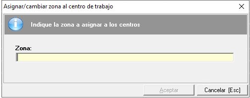 Con esta herramienta podremos asignar una misma zona geográfica de forma masiva a varios centros de trabajo del listado.