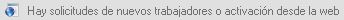 En el buscador de trabajadores, si existieran trabajadores pendientes de validar, es decir, que hubieran sido dados de alta por la empresa desde la web de empresa y tengan que ser validados por el usuario de Prevengos, aparecerá en la zona superior derecha del buscador un aviso similar al siguiente: