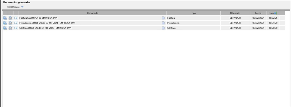 Dentro de este bloque, situado en la parte inferior, encontramos todos los documentos que se han generado, tal y como podemos ver en la siguiente imagen: