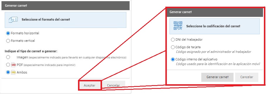 Estos carnets, como comentamos anteriormente, se pueden generar tanto en la web de empresa como en la de contrata: