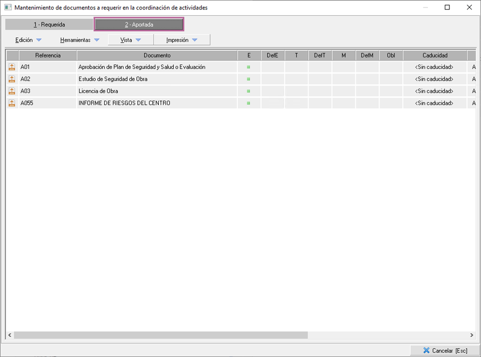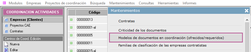 - Crear el registro de documento a aportar en el mantenimiento del módulo CAE.