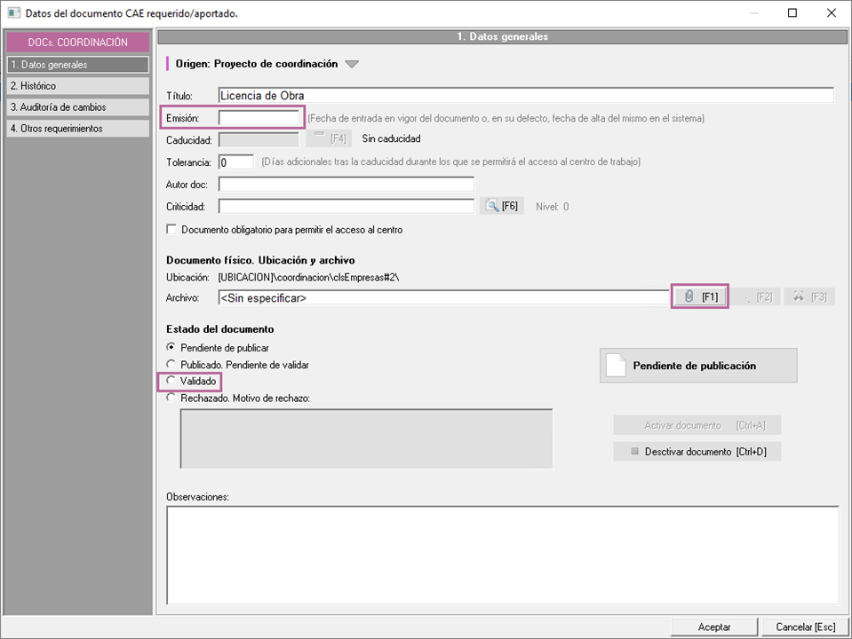 - Establecer el estado Validado.