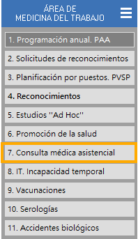 Tras usar el menú mencionado, los resultados de la consulta médica quedan resaltados en la columna "Nº de consulta", como se muestra en la imagen inferior.