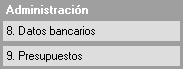 El menú Datos bancarios permite establecer las cuentas bancarias a usar, por ejemplo, para los futuros cargos de recibos.
