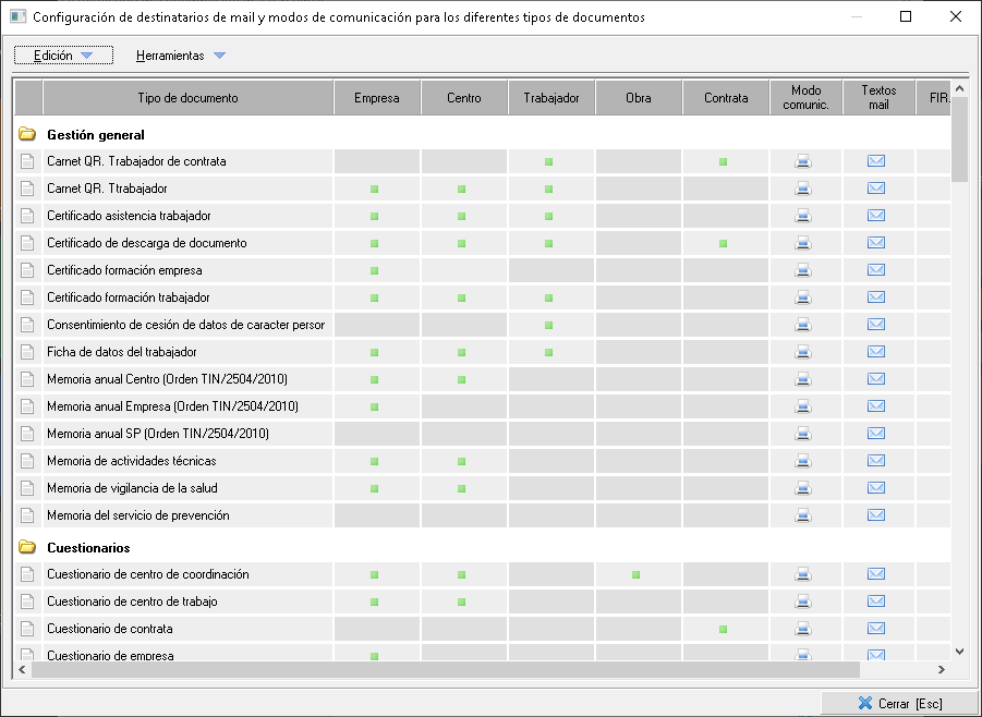 Este es el modo por defecto de comunicación de los documentos que genera Prevengos, que sólo es editable por un usuario administrador del aplicativo.