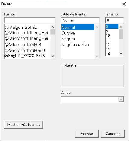 da acceso al formulario para seleccionar fuente, estilo y tamaño, de los disponible en el S.O., a aplicar.