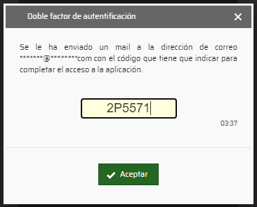 - "Correo electrónico": el usuario recibirá el código de verificación del doble factor en el e-mail indicado en su ficha.