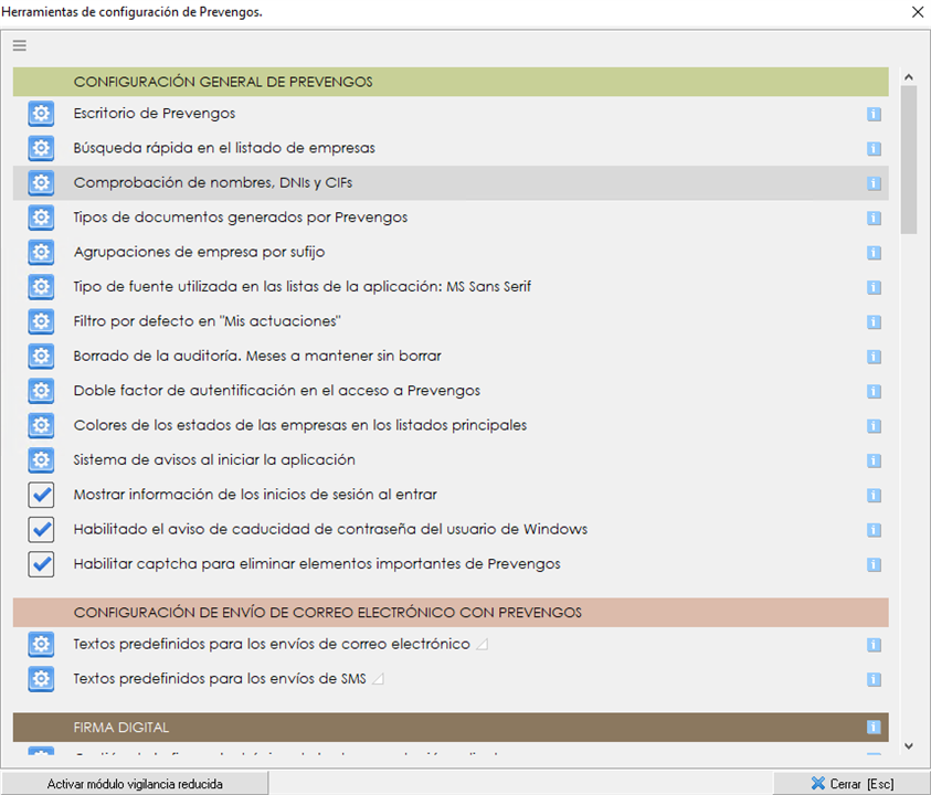 Prevengos dispone de un formulario de configuración para los módulos y esta guía explicará las opciones de configuración general que se pueden realizar en Prevengos.