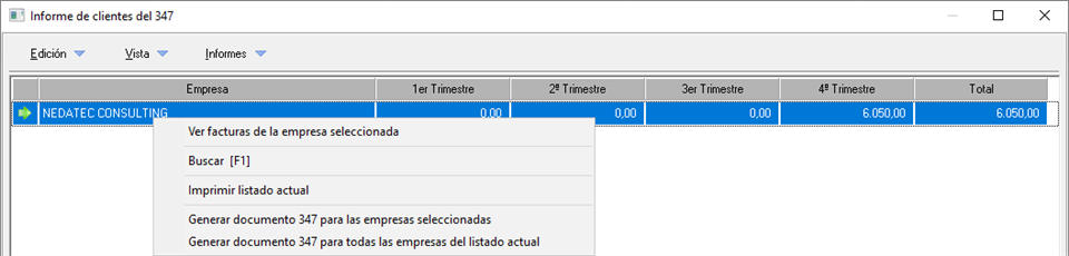 Una vez seleccionada la empresa o empresas deseadas, puede realizar las acciones indicadas tanto en los desplegables de la barra superior como con el botón derecho del ratón.