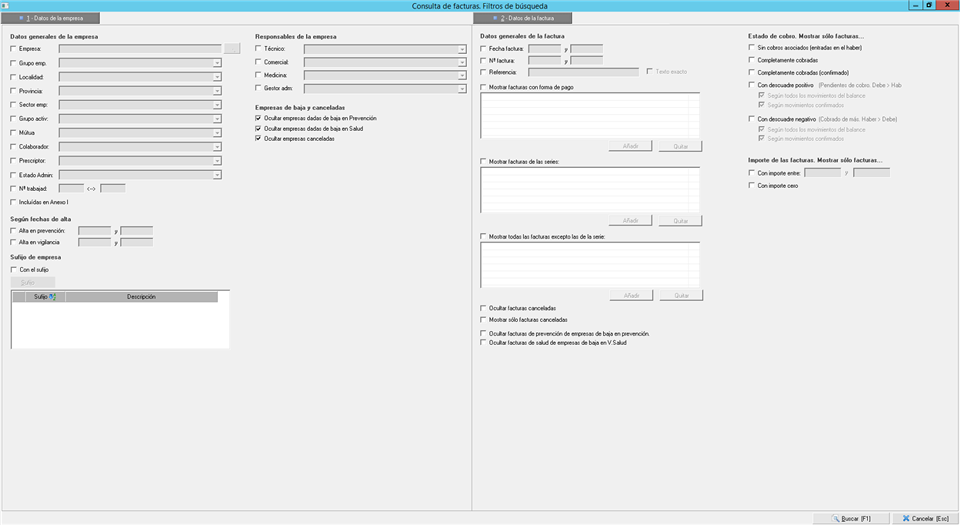 - Estado de la empresa (baja y/ cancelación). Por defecto están seleccionados.