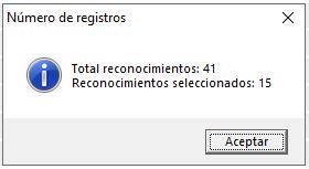 Al igual que en otros listados de Prevengos, pulsando en el teclado [Ctrl+T] se abrirá una pequeña ventana donde se indicará el número total de elementos que aparece en el listado, así como el número de los que se hayan seleccionado antes de pulsar [Ctrl+T].