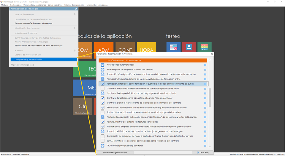 Lo primero que tiene que hacer es indicarle a Prevengos desde donde debe realizar la comprobación sobre las necesidades formativas, para ello acuda a la configuración de Prevengos tal y como muestra la siguiente imagen: