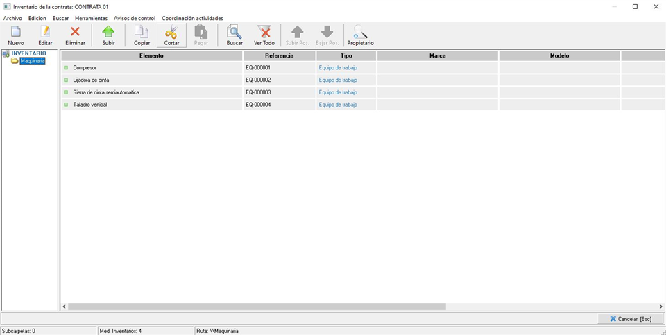 Empezaremos viendo en los siguientes apartados la visión general de la pestaña 'inventario' seguido de la ficha del propio elemento, donde explicaremos detalladamente todas las pestañas disponibles.