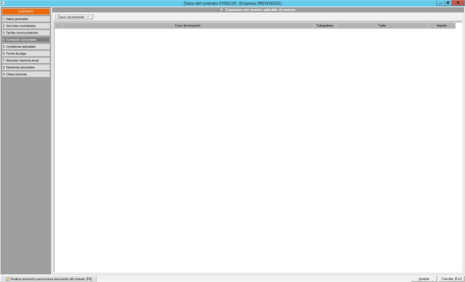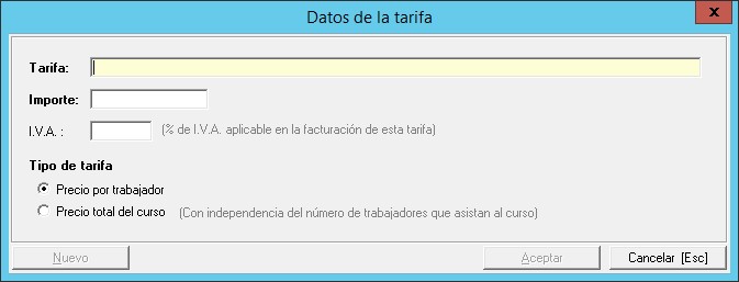 Este apartado es similar al de las tarifas de reconocimientos médicos y analíticas, pero en este caso aplicado sobre los cursos de formación contratados.
