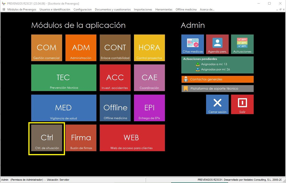 Para ello, una vez accedamos veremos diferentes botones relacionados con los módulos disponibles en nuestra licencia en una pantalla similar a la siguiente imagen.