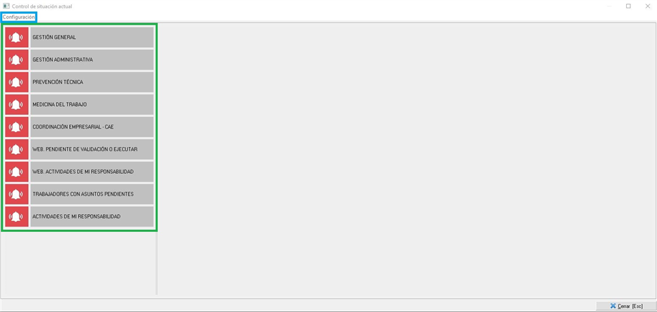 En la parte izquierda encontramos, para todos los módulos disponibles en nuestra licencia, su correspondiente botón con el que accedemos a los avisos disponibles en el módulo seleccionado. En los siguientes apartados del manual explicaremos cada una de las opciones disponibles, no obstante, y de manera informativa los enumeramos a continuación: