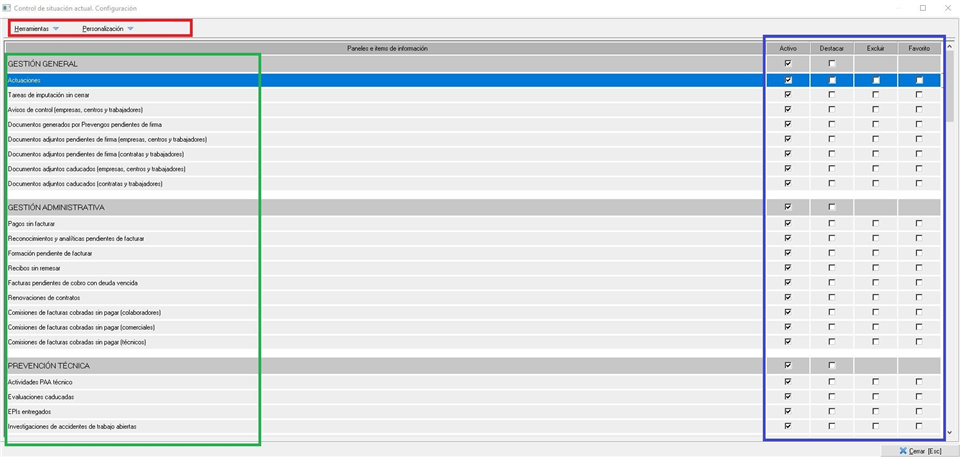 - Activo. Indicamos que queremos incluir este ítem en el control de situación actual