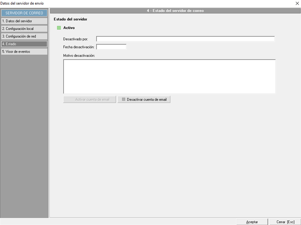 En este mantenimiento, es donde se van a definir las cuentas de correo electrónico que se podrán utilizar para realizar los envíos.