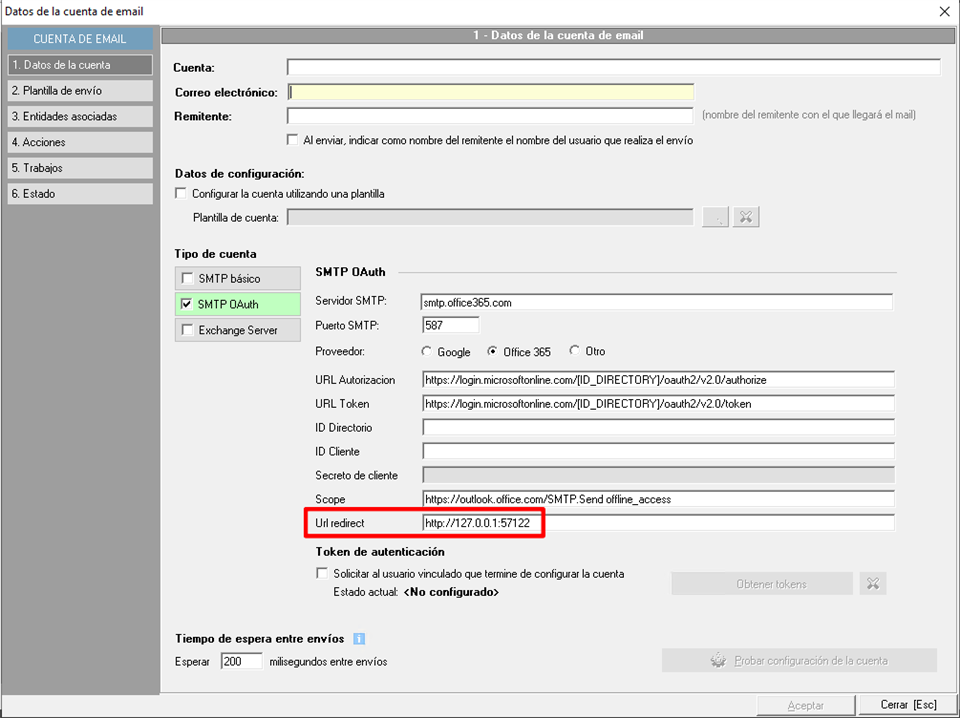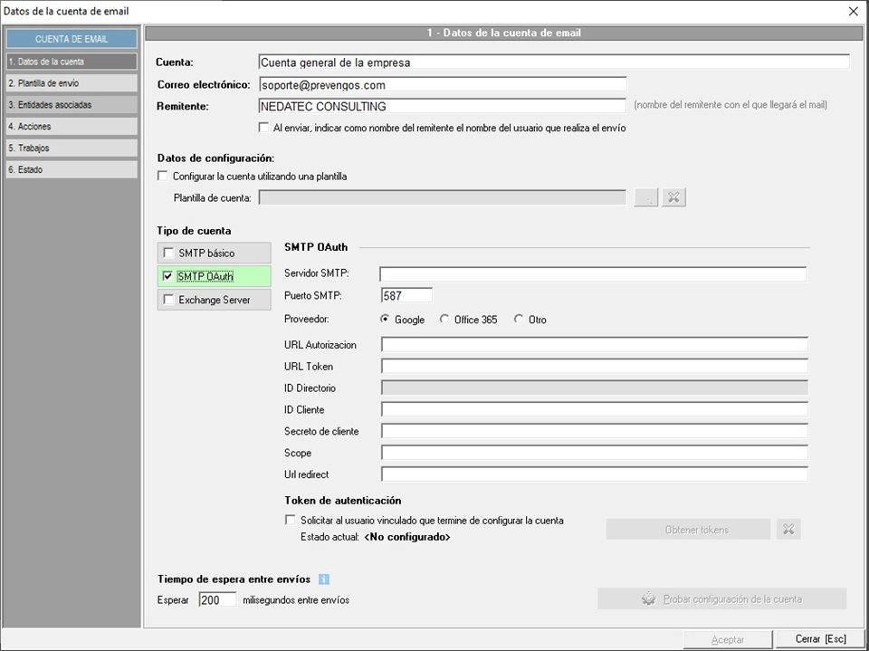 - SMTP OAuth. Sistema de envío con método de autentificación más avanzado, el cuál necesita otras opciones de configuración. La mayoría de proveedores están exigiendo este tipo de autentificación para el envío de correos desde aplicaciones.