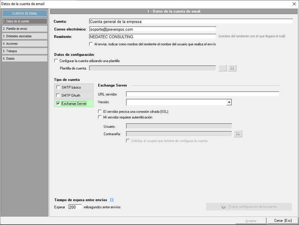 - Exchange Server. Para las cuentas de correo que utilicen este sistema de envío