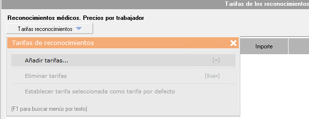 Añadiremos las tarifas haciendo en Tarifas reconocimientos > Añadir tarifas...