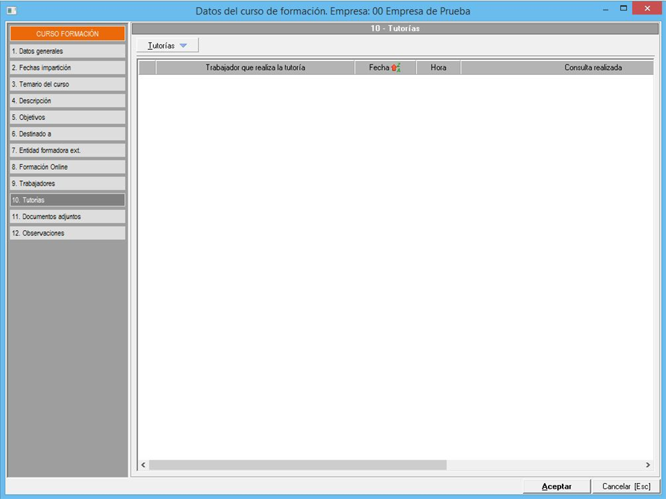 Una vez esté el curso en vigor y se reciban tutorías por parte de los trabajadores que realizan el curso aparecerán aquí o en la ficha del trabajador en la formación como veremos más adelante