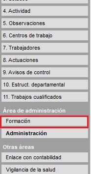 Lo primero que tenemos que acceder es a la parte de cursos de formación de una empresa, tal y como vemos en la siguiente imagen: