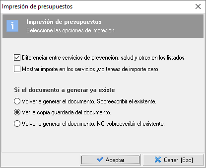 Debe tener en cuenta 2 consideraciones antes de proceder a la impresión del presupuesto: