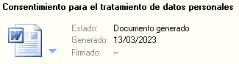 Desde este apartado también se genera el documento para la cesión de datos con la plantilla que trae por defecto el aplicativo.