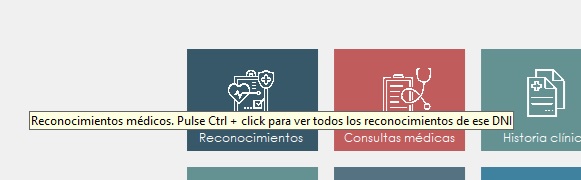 Para acceder a la consulta de todos los reconocimientos del trabajador pulsaremos "Control+click" sobre el icono de reconocimientos médicos.