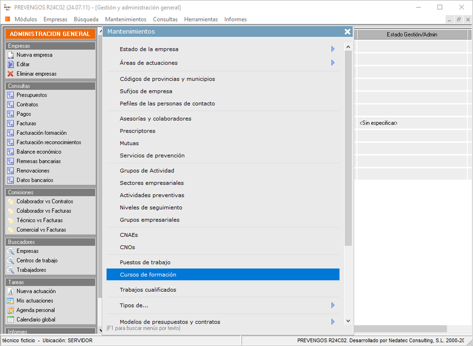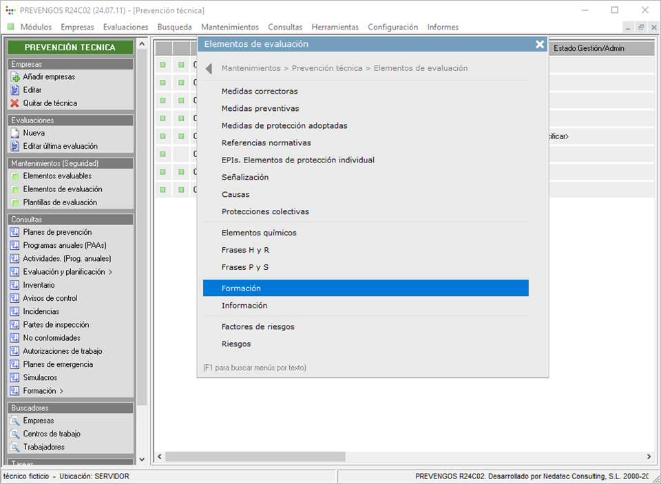 Prevengos permite registrar las formaciones realizadas al cliente, pero es necesario tener dichas formaciones en el sistema.