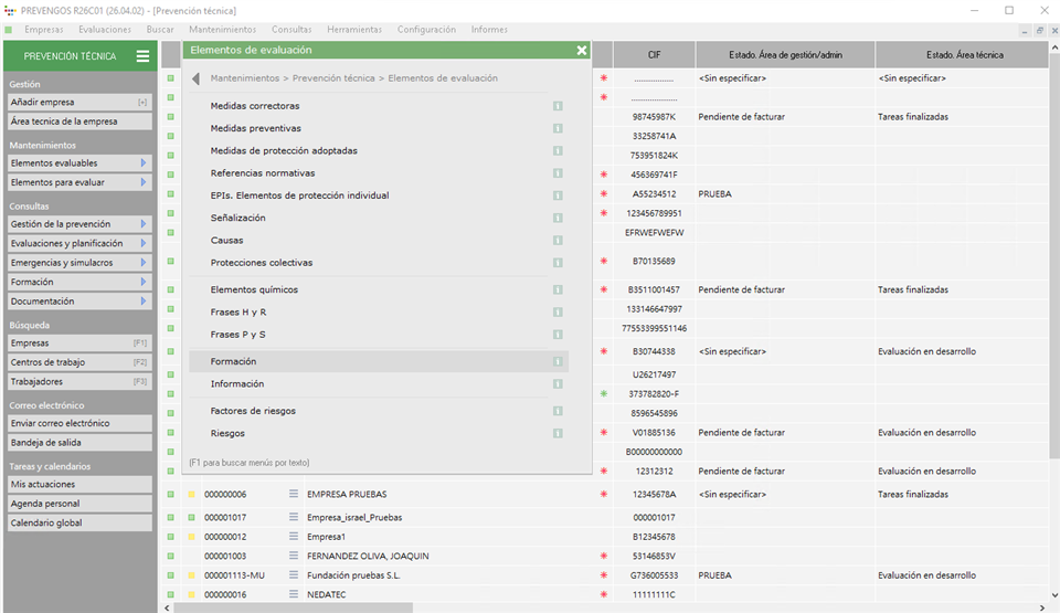 - En Prevengos disponemos de la consulta de necesidades formativas de un trabajador, la cual podemos ver desde el aplicativo y desde la WebApp. Esta consulta puede ser configurada para que compruebe la necesidad formativa del trabajador por su puesto de trabajo o por una evaluación de riesgos vigente. En caso de comprobar por su puesto de trabajo se comprobará este apartado de la ficha del curso en el mantenimiento para saber qué formación necesita realizar el trabajador en base al puesto de trabajo indicado en su ficha de datos.